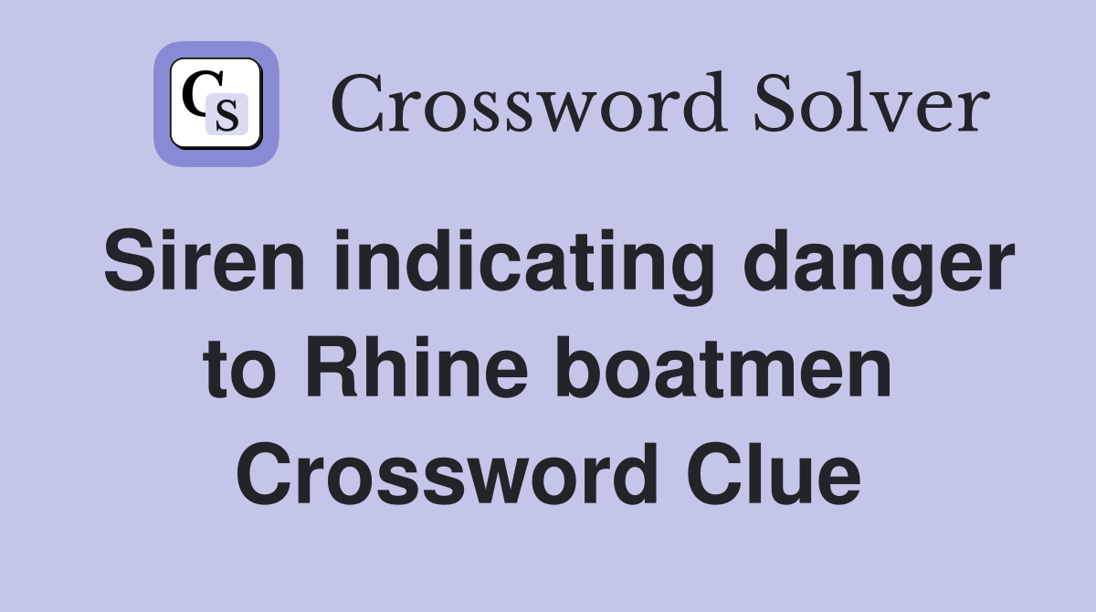 Siren indicating danger to Rhine boatmen Crossword Clue Answers Warning Siren Crossword Clue today's crossword puzzle clue is a quick one: Here is the answer for the crossword clue siren warning. siren warning crossword clue. Ny times, daily celebrity, telegraph, la. We have found 40 possible answers for this. We have got the solution for the warning siren crossword clue right here. We have found 40 possible answers for this clue. Warning Siren Crossword Clue.